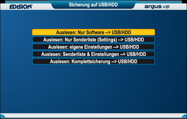 Sie verlassen das Menü 'Sicherung auf USB/HDD' bzw. die Untermenüs durch Drücken der EXIT-Taste.